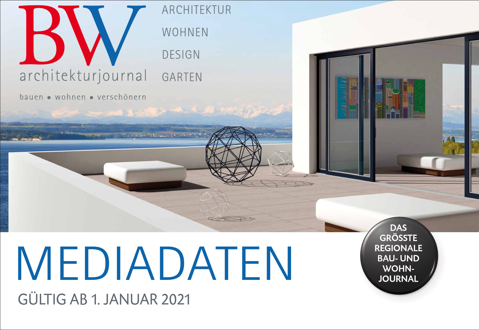 Ob gelungenes Einfamilienhaus oder außergewöhnliche Luxusvilla, ob raffinierter Umbau, aufwändige Sanierung oder anspruchsvolle Modernisierung – im BWV-architekturjournal dreht sich alles um das Bauen, Wohnen und Verschönern in den Metropolregionen Bodensee / Oberschwaben / Vorarlberg und Allgäu / Oberbayern / Schwaben.