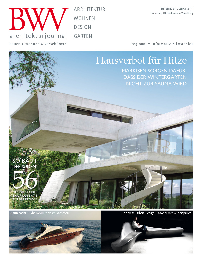 Mit seinem Verbreitungsgebiet vom Bodensee und dem Allgäu, über Oberbayern und Schwaben bis nach Vorarlberg (A) und bereits über 650 vorgestellten Bauprojekten hat sich das BWV-architekturjournal zum größten Bau- und Wohnmagazin in diesen Metropolregionen etabliert.