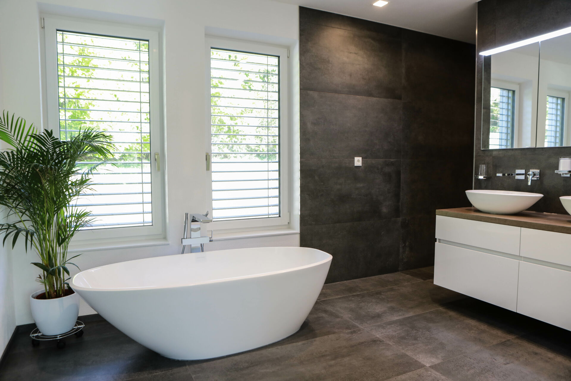 Innerhalb von zwei Jahren wurde das Einfamilienhaus mit knapp 200 Quadratmetern Wohnfläche fertiggestellt. „Dabei war der Bauherr selbst von Anfang an stark in die Planung, die Auswahl der Handwerker und den Bau involviert“, erzählt Birgit Dreier. „Er koordinierte alles und die meisten der Handwerker waren ihm sogar vorher persönlich bekannt.“ Durch die enge Zusammenarbeit aller Beteiligten konnte ein Baukörper entstehen, der innen wie außen geschmackvoll in seiner Erscheinung ist und die Natur in sich aufnimmt. Von allen Wohnräumen genießt der Bauherr nun freie Blicke in die Natur und hat hier seinen ganz persönlichen Ort der Erholung und Entschleunigung gefunden.