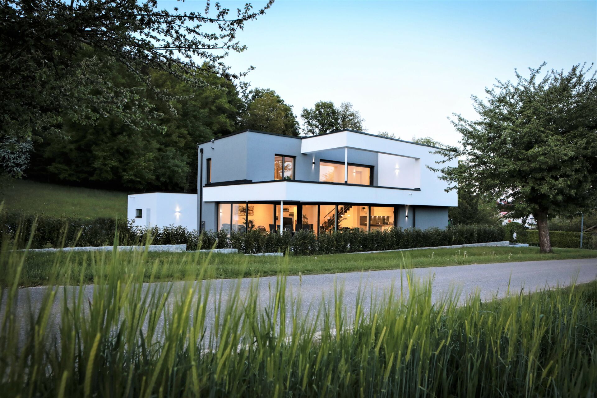 Nicht als Bäume, Wiesen, Pflanzen und die Laute von ein paar Tieren – wer wünscht sich in der heutigen schnelllebigen Zeit keinen Rückzugsort im Grünen? Der Wunsch eines Bauherren aus Neuburg, ein Grundstück in Ortsrandlage, am Wald, zu bebauen und sich dort seinen ganz persönlichen Rückzugsort zu erschaffen, ist also durchaus nachvollziehbar. Doch so etwas geht nicht allein. Daher holte sich der Bauherr die Architektin Birgit Dreier ins Boot, die ein Effizienhaus 55 konzipierte, das sich harmonisch in die ländliche Umgebung einfügt.